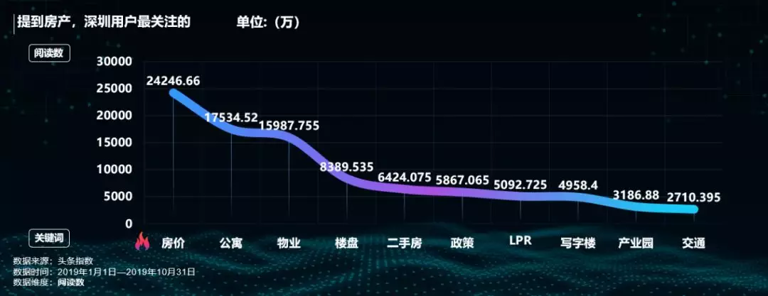 數(shù)據(jù)顯示,今年提到房產(chǎn),深圳網(wǎng)友最關(guān)注的是“房價”、“公寓”、“物業(yè)”這三大關(guān)鍵詞。