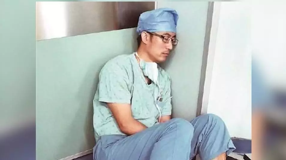 8月,深圳龍崗中心醫(yī)院骨關節(jié)科的一位醫(yī)生代宇因一張照片在網(wǎng)上走紅。圖片中,他穿著手術(shù)服,坐在手術(shù)室的地上,靠墻睡著了。