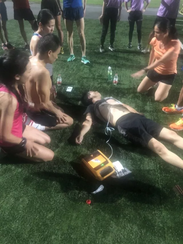 在深圳市體育館,42歲的孫先生跑完4公里,做平板時突發(fā)心梗,心跳呼吸驟停。深圳市體育館保安見狀,立馬拿來救命神器“AED”,在旁邊跑步的深圳晶報記者張國防和教練邊崎也立馬上前救人,隨后市民易李霞,深圳市第二人民醫(yī)院規(guī)培醫(yī)生盧秋敏、北大深圳醫(yī)院放射科醫(yī)生梁建樂等也加入救援,成功挽回孫先生生命。
