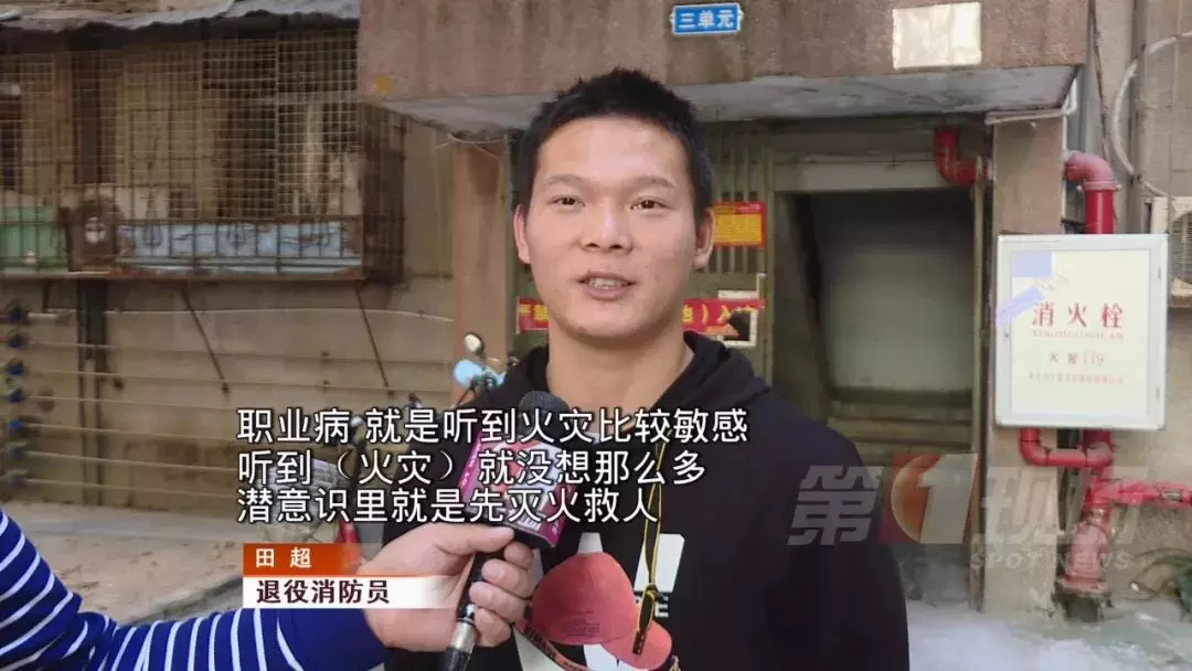原來,田超是一名退役的消防員,一聽到火災,第一時間想的就是滅火救人。他的專業(yè)素養(yǎng)幫助了他,先將頂上的障礙物掃一掃,把火壓回去,再慢慢往里面攻。