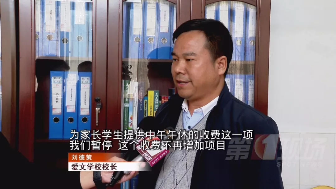 愛文學(xué)校校長劉德策介紹,春季學(xué)期為家長學(xué)生提供了中午午休的收費這一項,但現(xiàn)在已暫停這個收費項目的計劃。而針對不交費就不能在校午休的說法,這名負(fù)責(zé)人表示并不知情。