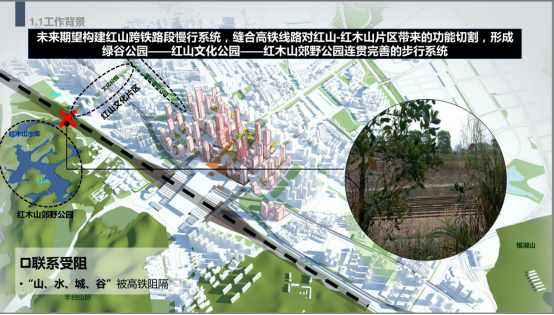 目前的北站,“山、水、城、谷”被高鐵阻段,跨鐵路慢行系統(tǒng)的建設就很重要啦