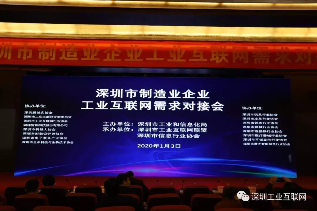 2020年1月3日,由深圳市工業(yè)和信息化局主辦,深圳市工業(yè)互聯(lián)網(wǎng)聯(lián)盟、深圳市信息行業(yè)協(xié)會承辦,深圳鵬城實驗室、深圳市工業(yè)互聯(lián)網(wǎng)專家委員會、深圳市工業(yè)互聯(lián)網(wǎng)行業(yè)協(xié)會協(xié)辦的“深圳制造企業(yè)工業(yè)互聯(lián)網(wǎng)需求對接會”在研祥科技大廈圓滿舉行。來自40家深圳制造業(yè)企業(yè)、30家工業(yè)互聯(lián)網(wǎng)資源池服務(wù)商、13家行業(yè)協(xié)會及25位工業(yè)互聯(lián)網(wǎng)專家近200人出席會議。深圳市工業(yè)和信息化局局領(lǐng)導(dǎo)李鄭祥到會并講話,市工業(yè)和信息化局信息與軟件服務(wù)處處長江雪明致辭,寶區(qū)、龍華、龍崗等區(qū)工業(yè)和信息化局相關(guān)負(fù)責(zé)人出席本次對接會。