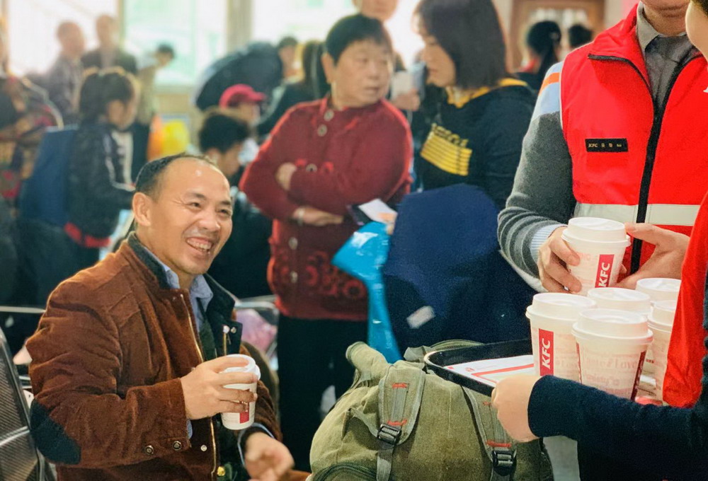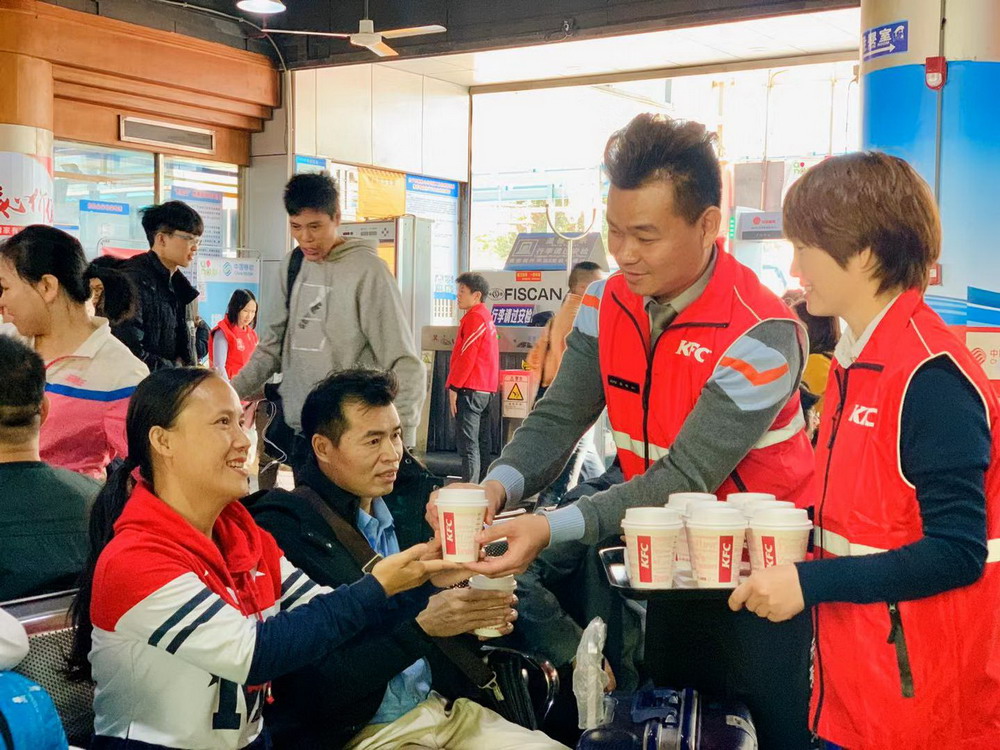 春節(jié)臨近,深圳福永汽車站迎來旅客返鄉(xiāng)的高峰。1月12日,深圳肯德基聯合福永義工聯為返鄉(xiāng)的建設者贈送1000杯愛心熱飲,將溫暖與愛帶回家。據悉,這是深圳肯德基第三年參與春運愛心贈飲活動。