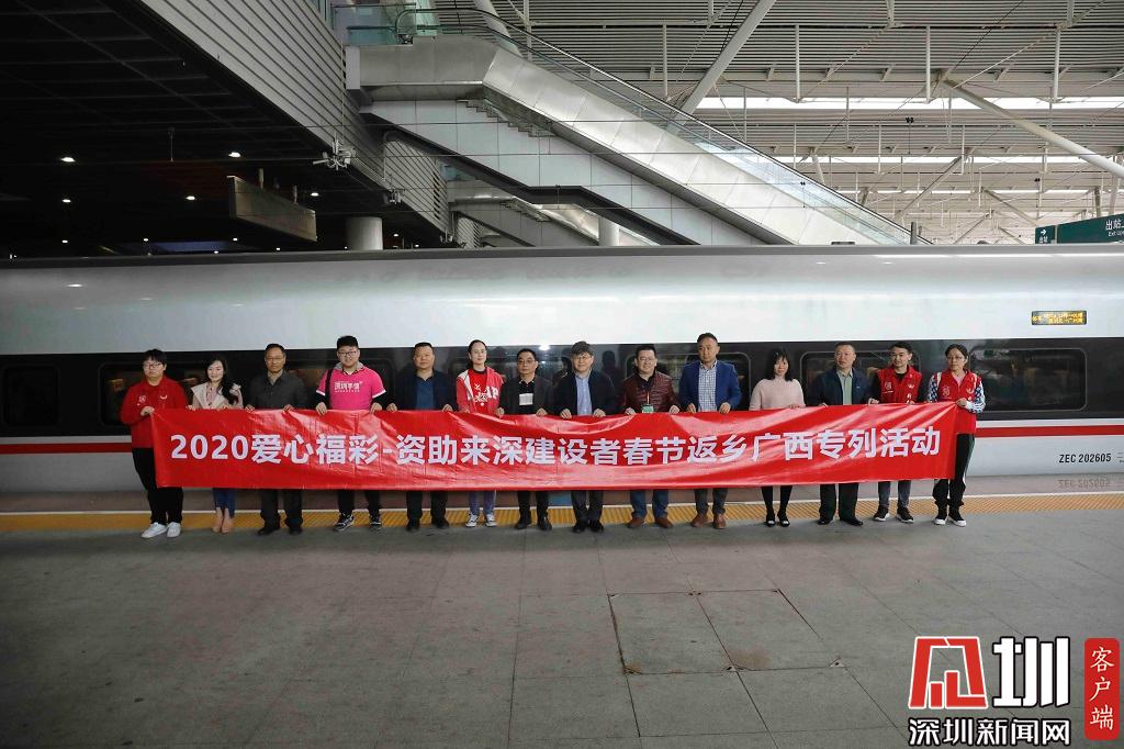 見圳客戶端·深圳新聞網(wǎng)2020年1月18日訊(見圳客戶端、深圳新聞網(wǎng)記者 楊浩翰)1月18日,“2020愛心福彩-資助來深建設者春節(jié)返鄉(xiāng)廣西專列”在深圳北站發(fā)車。今年是該活動舉辦的第二屆,2300多名在深建設者通過乘坐該專列返鄉(xiāng)。