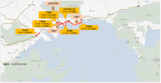 預計東部華僑城-大小梅沙片區(qū)春節(jié)假期周邊主要擁堵路段有深鹽路(11:00-12:00東行)、環(huán)梅路(15:00-17:00東行、17:30-19:00西行)、藝海路(15:00-16:00南行、14:30-15:30北行)、鹽壩高速公路(17:30-18:30西行)、鹽梅路(11:30-17:00東行)、深葵路(13:30-14:30西行)。具體分布如下: