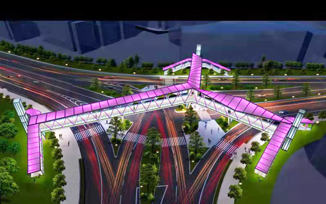 據(jù)介紹,東濱路人行天橋項(xiàng)目位于南山區(qū)東濱路與南山大道的三岔路口,經(jīng)前期多個概念性方案設(shè)計(jì)比選,最終采用三個方向主梁互為 120°交角的“Y”形方案,共計(jì) 6座鋼結(jié)構(gòu)梯道和3部垂直電梯。完工后,這座漂亮的人行天橋或?qū)⒊蔀槭忻翊蚩ǖ木W(wǎng)紅景點(diǎn)。