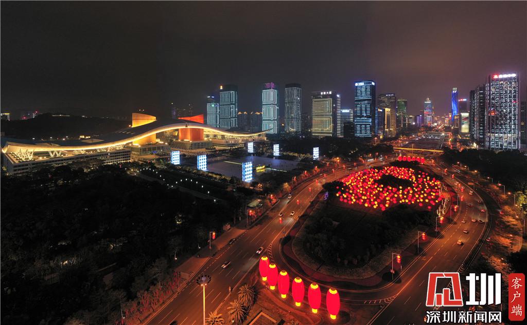 在重要區(qū)域設置迎春燈光小品,其中,在深南大道水晶島東西兩側制作了12個巨型紅燈籠,高10米,直徑4.5米,渾圓火紅的巨型燈籠寓意著萬家團圓,福運連連。