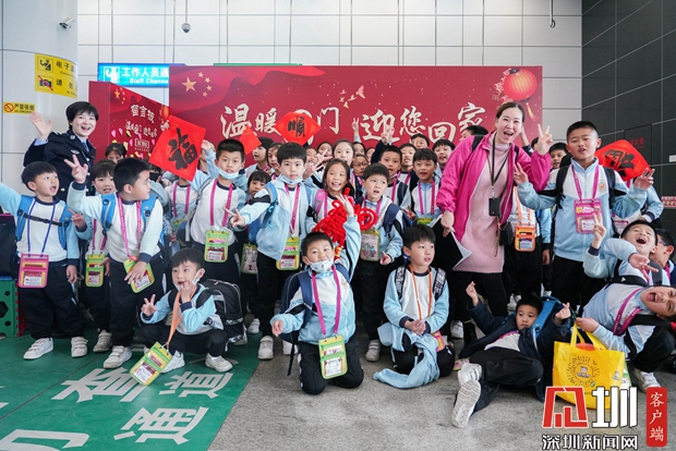 文錦渡邊檢站跨境學童開心合影。