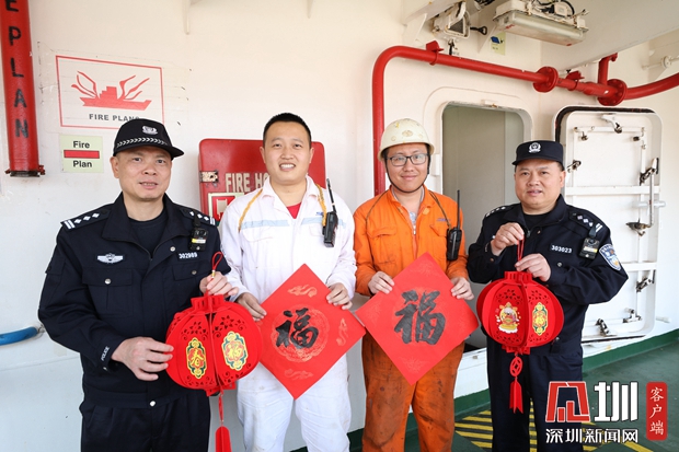 為了讓國際船舶上工作的中國籍船員感受到濃厚的春節(jié)氣息,鹽田邊檢站開展“迎春送福”登輪走訪活動。在實施登輪檢查的同時,向國際船舶上的中國籍船員贈送春聯(lián)、燈籠、中國結(jié)等節(jié)慶用品,將中國的“年”送上國際船舶,向船員送上新春祝福、節(jié)日問候。