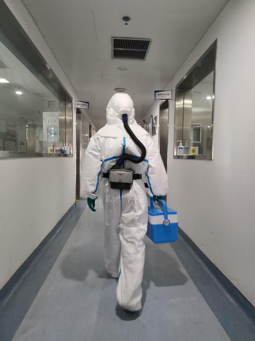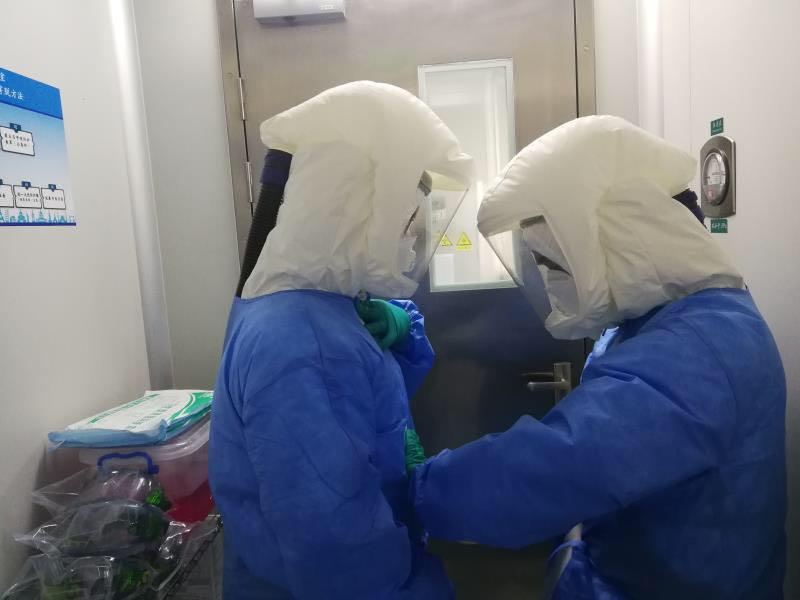 ▲大年三十,深圳市第三人民醫(yī)院實(shí)驗(yàn)室正在進(jìn)行確診患者的病毒載量動態(tài)檢測,他們在操作的時候穿著重達(dá)3至4斤的個人防護(hù)裝備,進(jìn)去一次就連續(xù)工作4個小時左右,每次出來內(nèi)衣全部濕透。