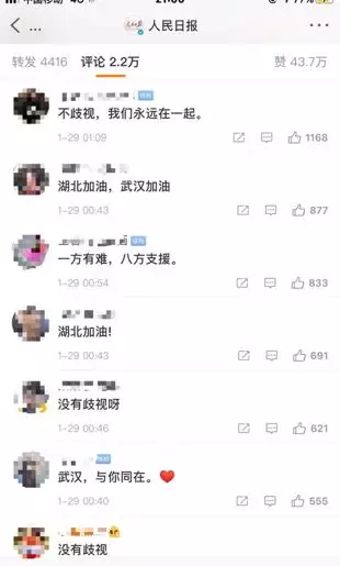 在武漢市委書記回應(yīng)歧視湖北人的微博下面,