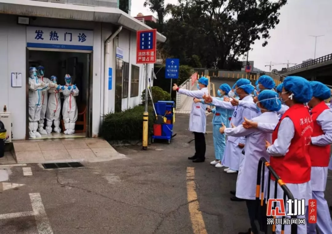 大年初一早上九點,深圳市第二人民醫(yī)院發(fā)熱門診門口,院長正在帶隊慰問在發(fā)熱門診一線“戰(zhàn)疫”的工作人員,因為處于敏感病區(qū),發(fā)熱門診的工作人員只能這樣全幅武裝地表達決心。