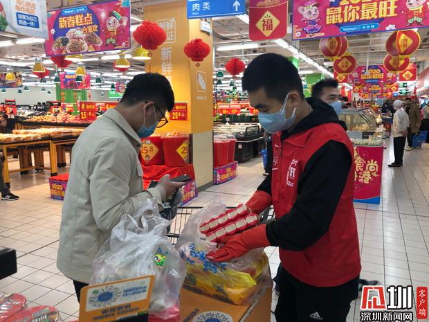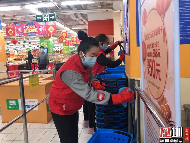 見(jiàn)圳客戶(hù)端·深圳新聞網(wǎng)2020年1月31日訊(見(jiàn)圳客戶(hù)端、深圳新聞網(wǎng)記者 胡津瑋)戴上口罩、手套,再穿上標(biāo)志性的紅色馬甲,市食藥志愿服務(wù)總隊(duì)的志愿者們紛紛走上超市的各個(gè)崗位,清理貨品、補(bǔ)貨、對(duì)購(gòu)物車(chē)購(gòu)物籃進(jìn)行清潔消毒、為來(lái)購(gòu)物的市民測(cè)量體溫…據(jù)了解,由于春節(jié)期間各大商超缺少人手,在市市場(chǎng)監(jiān)管局與團(tuán)市委的指導(dǎo)下,市食藥志愿服務(wù)總隊(duì)迅速調(diào)動(dòng)全市在深的食品藥品安全志愿者,成立了由近300名食品藥品安全志愿者組成的春節(jié)“菜籃子”志愿者保障工作小組,為全市各大商超提供志愿服務(wù),全力保障市場(chǎng)供應(yīng)、消除市民顧慮,在防控疫情特殊期間注入了紅馬甲的正能量。記者今天便走訪了深圳的一家超市,尋找這批紅色的身影,了解他們一天的工作。