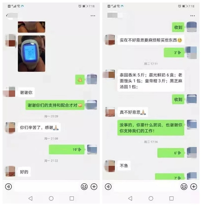 隔離期間正值新春佳節(jié),郭金發(fā)時刻牽掛一家人隔離后的生活,擔心因疫情對居民的生活帶來不便,心理上造成傷害。他要求社區(qū)積極落實該家庭生活物資后勤保障,前后4次為隔離家庭送去溫度計、中藥湯包、口罩等防護物資,還有新鮮蔬菜、水果、牛奶、饅頭、米、湯圓等生活物資。同時督促網(wǎng)格員每天通過電話或微信、視頻對該家庭3名成員進行體溫監(jiān)測。郭金發(fā)每天都會主動電話聯(lián)系他們,問候一聲,閑聊幾句,及時掌握一家人的身體狀況,安撫他們緊張的情緒。所幸,目前這家人身體都很健康,情緒也很穩(wěn)定。老人的女兒告訴郭金發(fā),因為社區(qū)的努力,一家人的這個春節(jié)并沒有因疫情而過得艱難,工作人員的付出和關(guān)心他們都看在眼里,記在了心里。