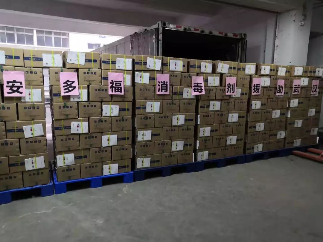 1月25日(大年初一)下午,安多福公司緊急向向武漢援助500箱共12000瓶專業(yè)醫(yī)用消毒液,總價(jià)值564000元,連夜從深圳馳援武漢,用于保障疫情防控一線的醫(yī)護(hù)人員安全。