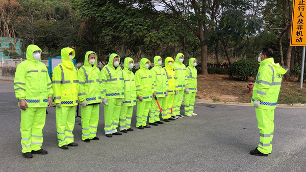 目前,燕羅街道各社區(qū)將庫存的防水材質三防防護服全部送到一線,隊員們穿著時將袖口、脖口的鎖口扎緊,褲子選取大一碼的方便遮住腳面,同時佩戴護目鏡、口罩、一次性手套、一次性鞋套,對全身進行包裹。換班時,利用配置好的消毒水全面噴淋,或是在消毒桶里浸泡不少于20分鐘,并在太陽下掛起晾曬。