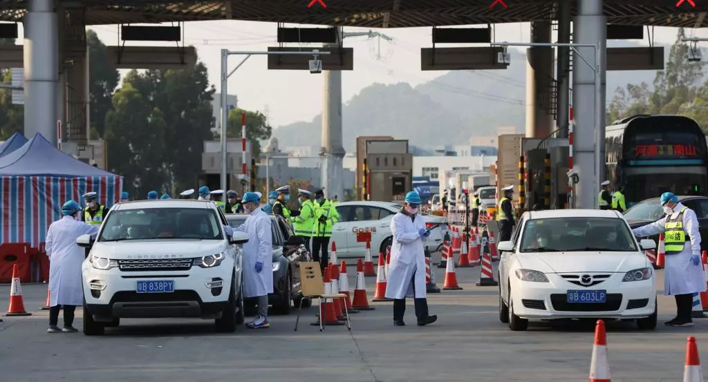 2月2日中午,深晚記者來(lái)到梅觀高速觀瀾收費(fèi)站,發(fā)現(xiàn)這里開(kāi)通了4條車道供車輛通行,現(xiàn)場(chǎng)有超過(guò)20名民警、醫(yī)務(wù)人員檢測(cè)入深車輛司乘人員的體溫。