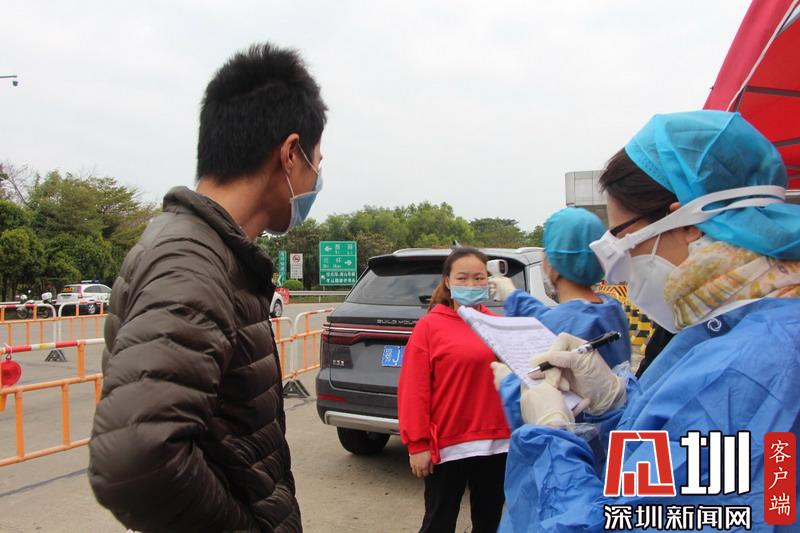 據(jù)了解,今年春節(jié)約有1500萬(wàn)人離深返鄉(xiāng),目前已有500萬(wàn)人回到深圳,還有近1000萬(wàn)人將返回深圳。2日下午,記者在現(xiàn)場(chǎng)看到,南頭收費(fèi)站僅開放了三條車道。每條車道分別設(shè)有2名志愿者,一名負(fù)責(zé)協(xié)助交警測(cè)量體溫,并檢查車內(nèi)乘載人數(shù),另一名負(fù)責(zé)登記車輛及人員信息。
