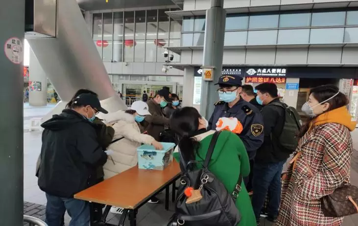 口岸工作人員正在對(duì)來(lái)往旅客進(jìn)行疫情防控知識(shí)宣傳