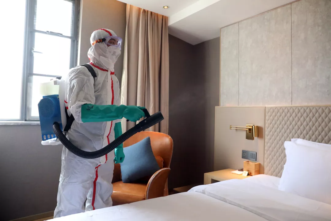 ▲疾控人員對病人住所進行終末消毒