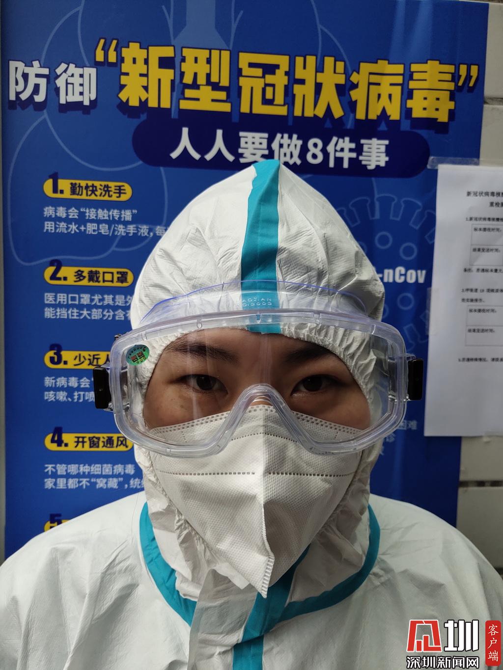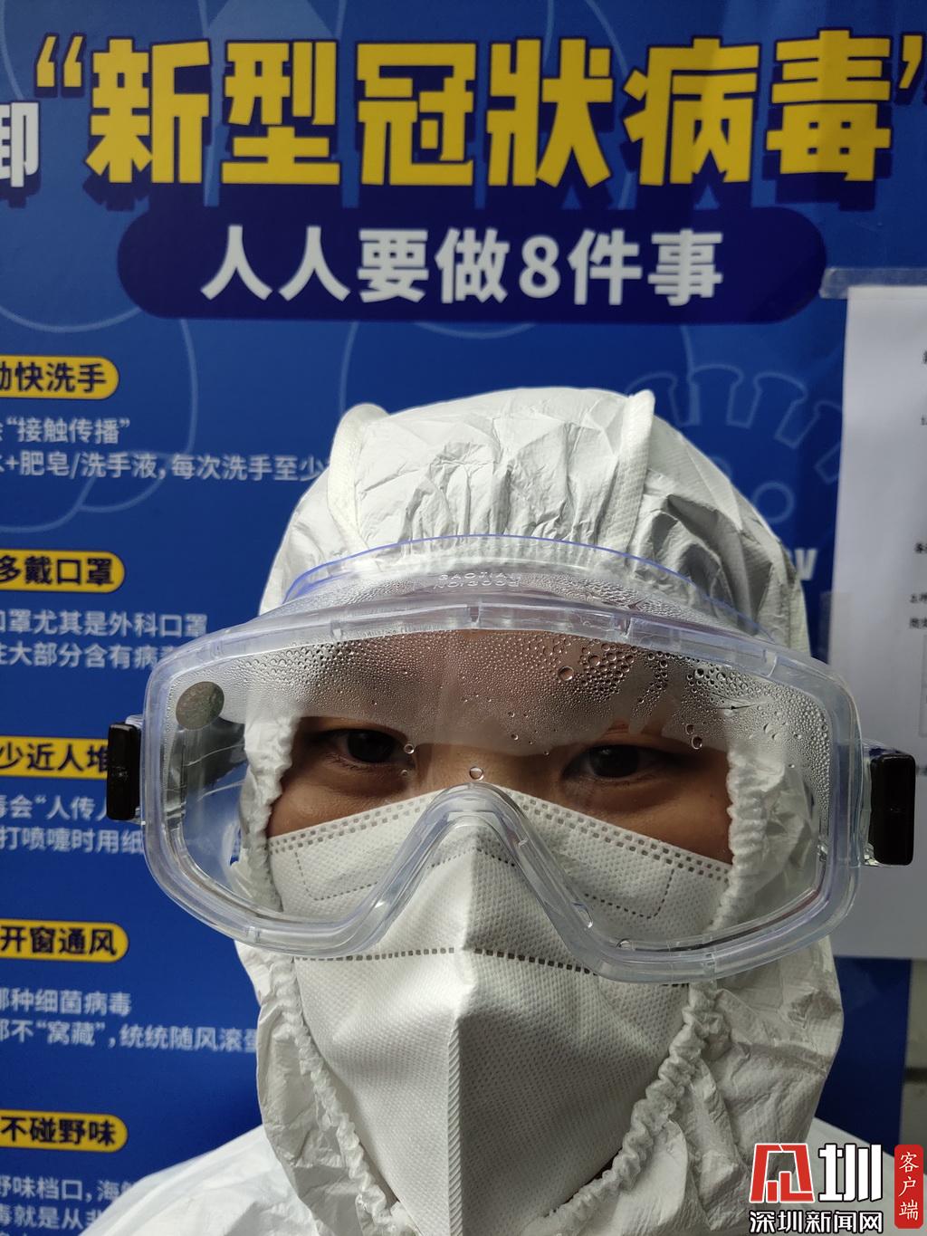 剛穿上防護(hù)服,護(hù)目鏡是這樣。