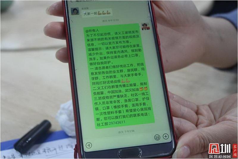 見圳客戶端·深圳新聞網(wǎng)2020年2月5日訊(見圳客戶端、深圳新聞網(wǎng)記者 吳梓欣)肺炎疫情,牽動(dòng)著每個(gè)深圳人的心。一場(chǎng)關(guān)系到每位公民生命健康的疫情防控戰(zhàn)已經(jīng)打響,而他們作為這座城市的主人公之一也從未缺席,他們便是深圳義工。1月28日,深圳市寶安區(qū)新安街道海樂社區(qū)黨群服務(wù)中心社區(qū)工作站一則招募“防疫義工”的消息出現(xiàn)在海樂義工群里,僅一個(gè)小時(shí)便召齊了20名志愿者。