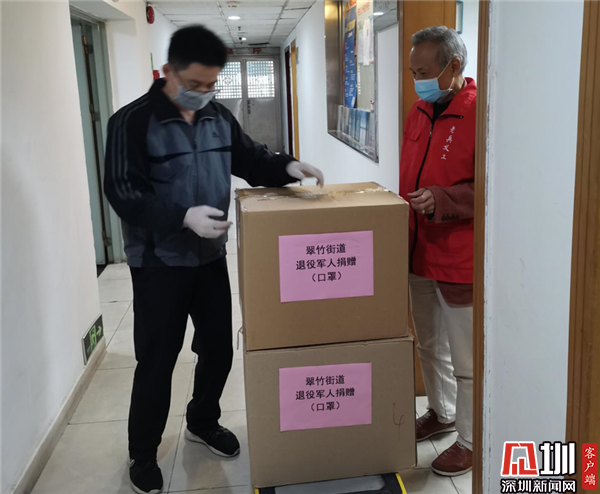 2月6日上午,一批價(jià)值2萬(wàn)多元的口罩送到深圳市羅湖區(qū)翠竹街道辦事處,原來(lái),這是退役軍人代表林貞輝、鄒強(qiáng)杰送來(lái)的防護(hù)物資?!霸诋?dāng)前防護(hù)物資緊缺的情況下,感謝你們對(duì)街道防疫一線工作的援助和支持,退役軍人‘退伍不褪色’的精神令人敬佩?!苯值傈h工委書記袁亮向他們表達(dá)感謝。