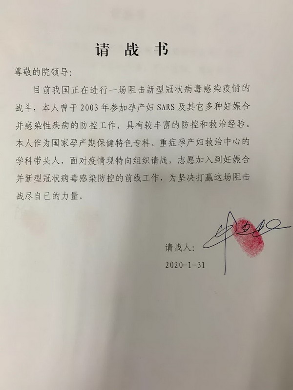 產(chǎn)科請(qǐng)戰(zhàn)書(shū)