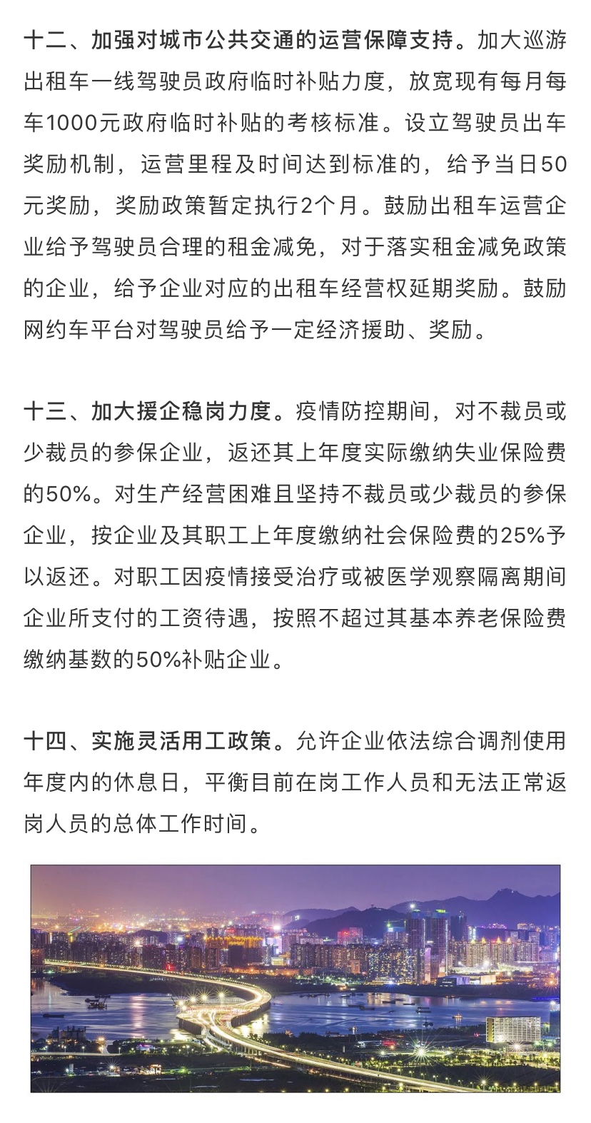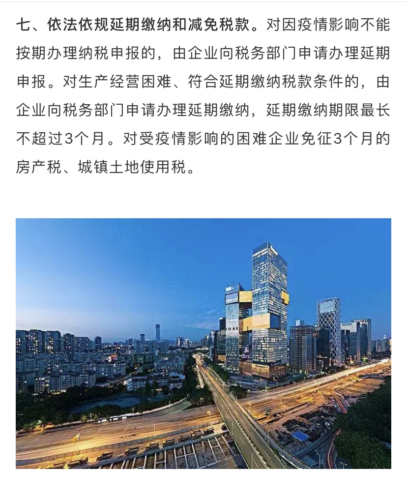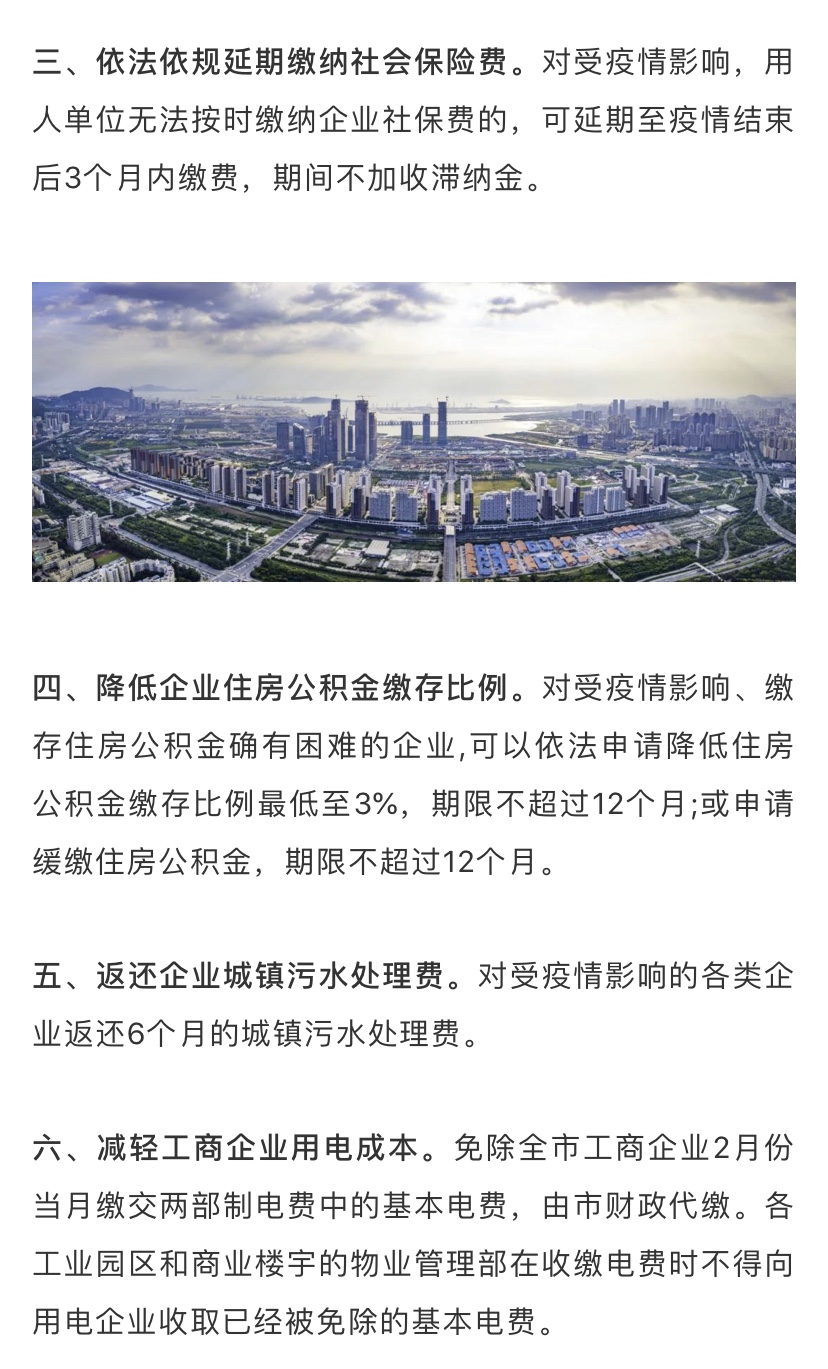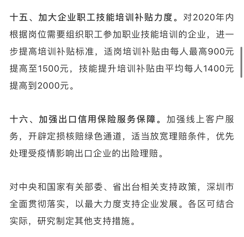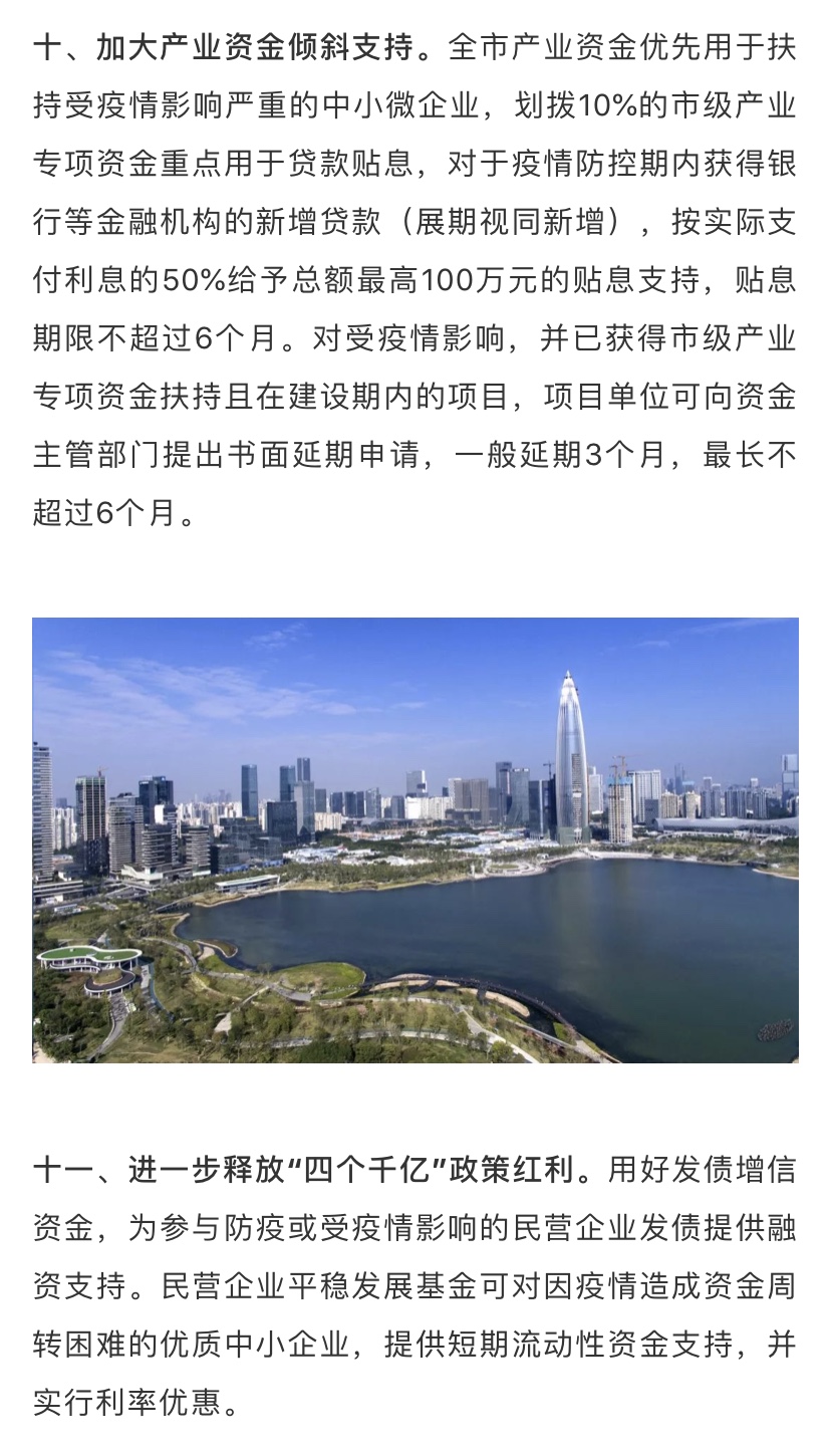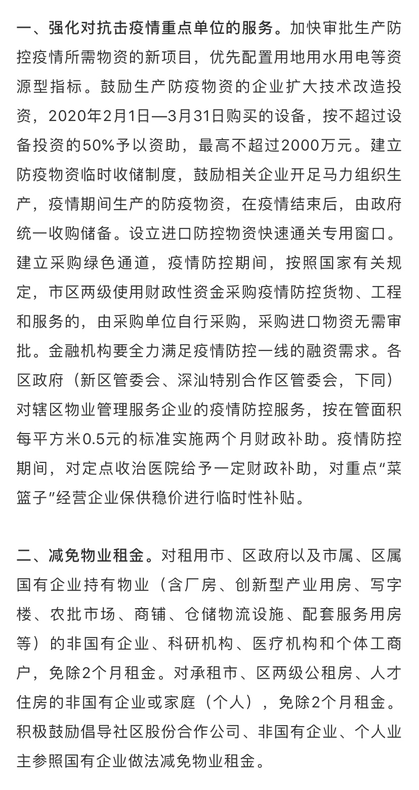 據(jù)了解,為深入貫徹落實習(xí)近平總書記關(guān)于堅決打贏疫情防控阻擊戰(zhàn)的重要指示精神,全面落實黨中央國務(wù)院和省委省政府關(guān)于做好新型冠狀病毒感染的肺炎疫情防控工作的決策部署,在做好防控工作的同時統(tǒng)籌抓好改革發(fā)展穩(wěn)定各項工作,支持企業(yè)共渡難關(guān),保障城市平穩(wěn)運(yùn)行和經(jīng)濟(jì)穩(wěn)定增長,深圳市政府特制定該工作措施。