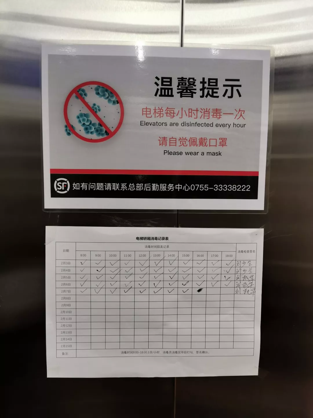 寫字樓電梯處放有抽紙。新華社記者孫飛2月7日攝