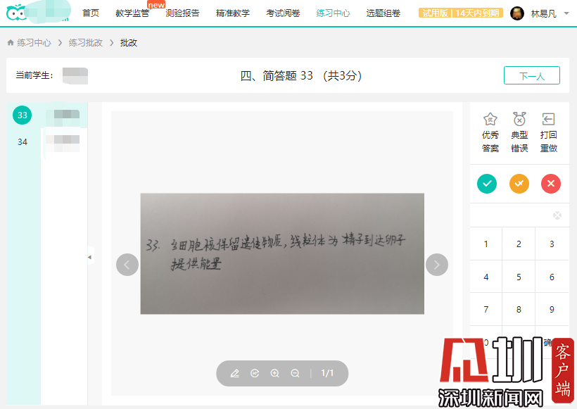 除了備課、上課外,如何及時完成布置作業(yè)、批改作業(yè)的工作也是線上授課的一個挑戰(zhàn)。深圳中學提前布局,配套了線上的智能教學系統(tǒng),讓同學們每天在線上完成作業(yè),從課后練習的角度保證了教學質(zhì)量。課后教師們通過學校的智能教學平臺批改同學們的作業(yè),并通過微信等方式回答學生的問題。
