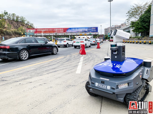 警用巡視機器人“建國”在深圳高速路口執(zhí)行巡邏任務(wù)。