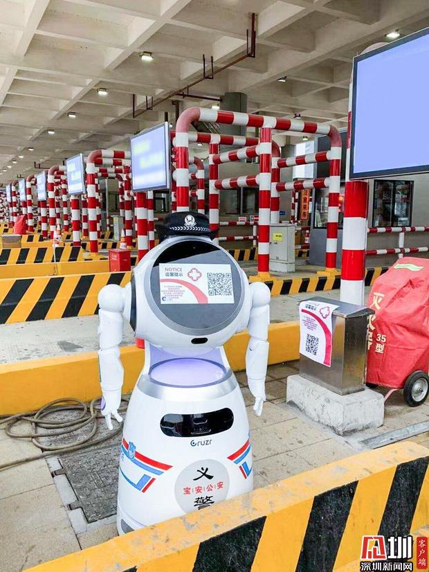 5G機器人義警“黃田田”提醒回深車輛掃碼登記。