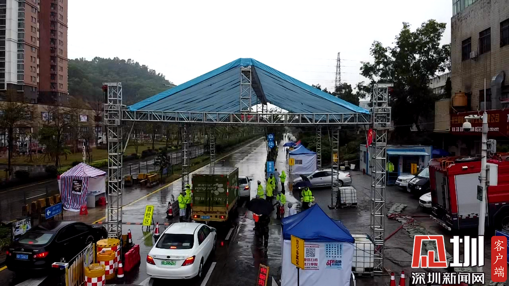 根據(jù)天氣降雨預(yù)警,布吉街道經(jīng)科辦和后勤連夜奮戰(zhàn),在鳳凰祥新西卡點(diǎn)搭建起長(zhǎng)20米、寬10米、高5米的臨時(shí)雨棚,保障一線奮戰(zhàn)干部職工以及過(guò)往市民開(kāi)窗檢測(cè)的方便。