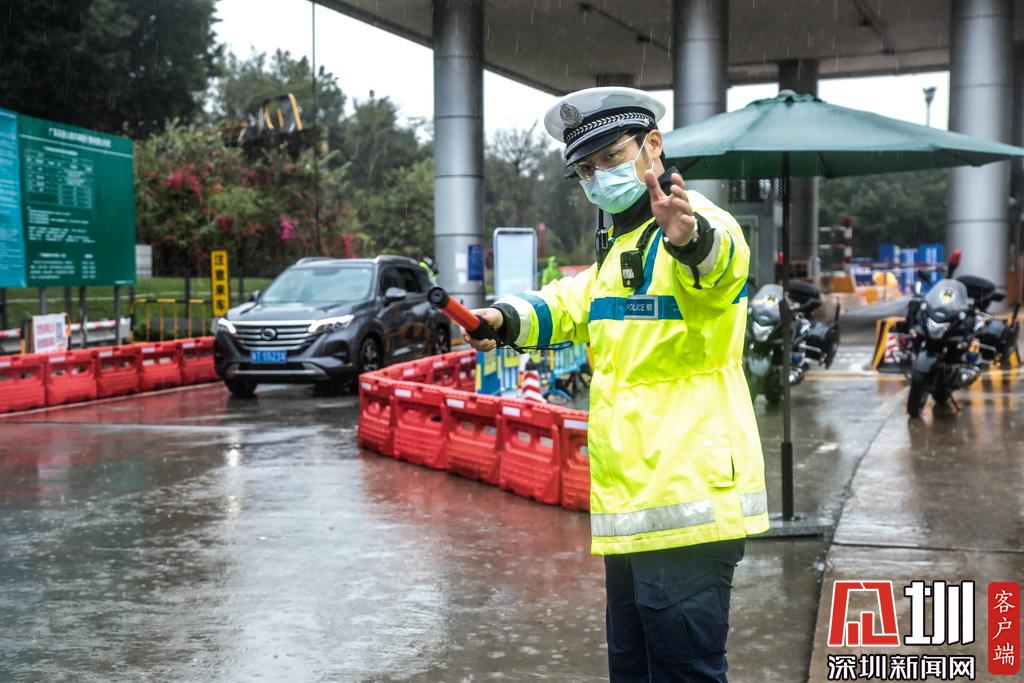 深圳交警執(zhí)勤民警引導車輛做防疫檢測
