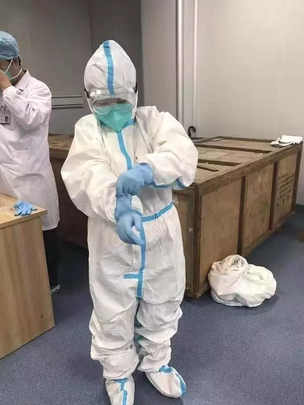 即便戴著口罩,還是能從她的語氣中聽到洋溢著的幸福感。刷過醫(yī)院醫(yī)生專有的門禁卡,袁曉珊進(jìn)入老公的辦公區(qū)域。她老公叫黃茗勇,是深圳市第三人民醫(yī)院放射科技師。見到他時,1米7左右的黃茗勇身上穿著藍(lán)色醫(yī)用防護(hù)服,臉上戴著白色醫(yī)用口罩?!斑@就是我老公?!痹瑫陨阂谎劬驼J(rèn)出來了。