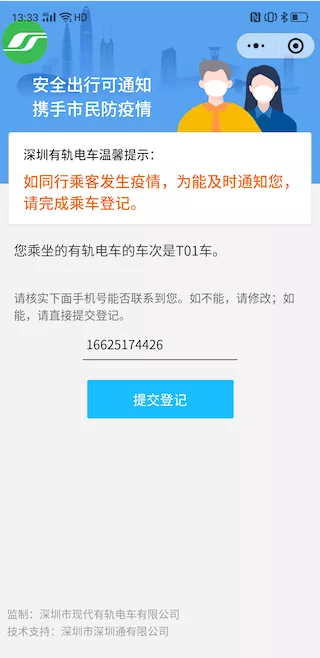 深圳有軌電車的乘車登記碼