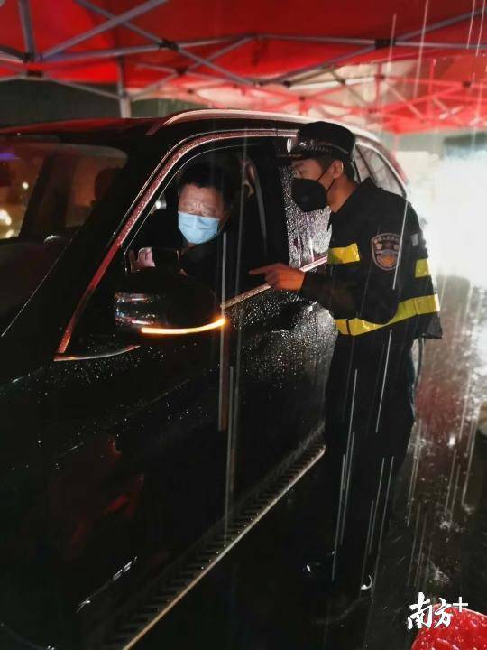 坪地街道黨工委書記曾憲旺冒雨夜巡檢查點,了解當日車流量以及重點區(qū)域人員返深情況,同時慰問一線執(zhí)勤人員及志愿者。