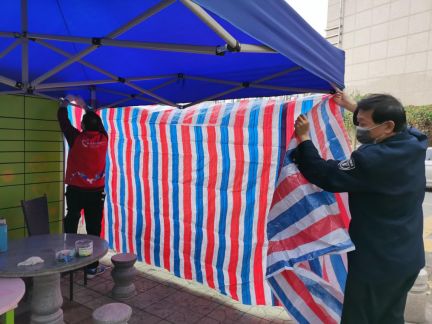 蛇口雷嶺社區(qū)迅速搭建起臨時圍擋、帳篷
