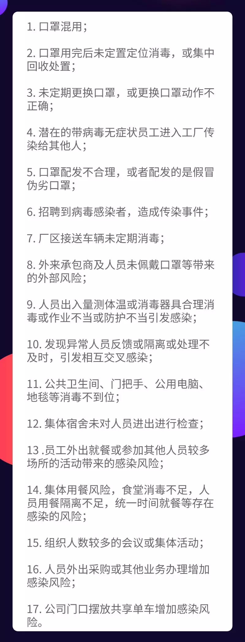 疫情防控和節(jié)后復產復工給企業(yè)安全生產帶來新挑戰(zhàn),如何做好防控措施?哪些風險又要防范?員工又如何自我保護?