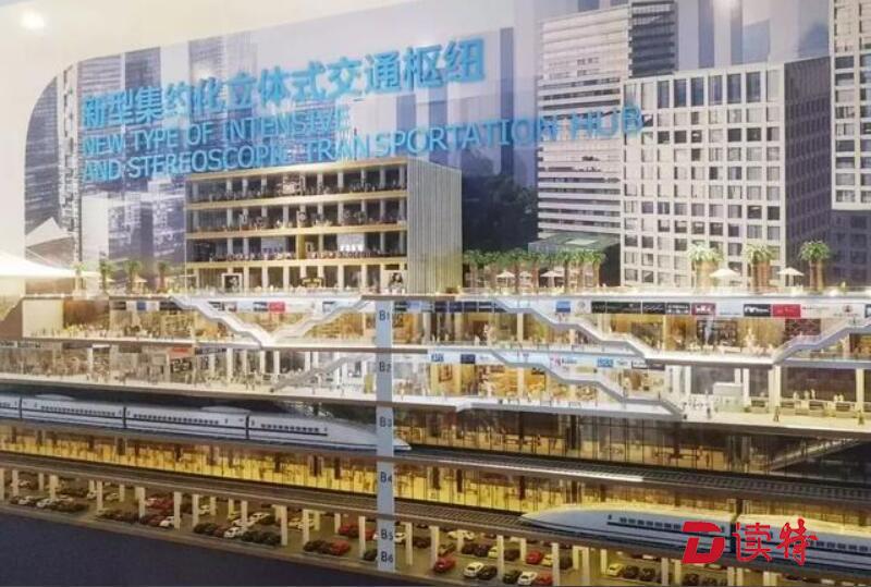 比如,樞紐建筑地下六層,其中上面三層為軌道及交通換乘區(qū),實(shí)現(xiàn)站城、市政道路無縫對(duì)接;下三層為地下車庫,設(shè)4900多個(gè)停車位。上蓋開發(fā)部分定位為集樞紐立體商業(yè)、甲級(jí)辦公、國(guó)際星級(jí)酒店及服務(wù)式公寓、商務(wù)公寓于一體的超級(jí)樞紐城市綜合體。