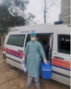 ▲傅偉去寶安區(qū)疾病預(yù)防控制中心運(yùn)送新冠肺炎檢測標(biāo)本。