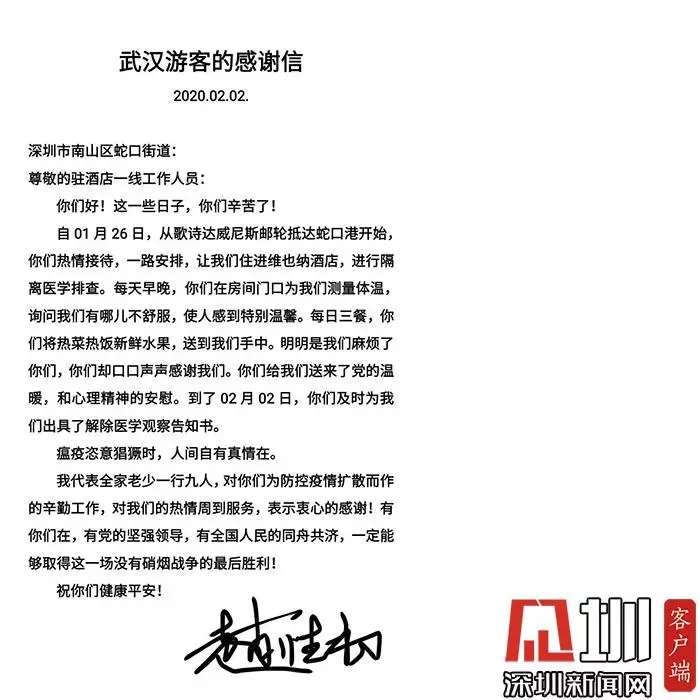 ▲威尼斯郵輪解除醫(yī)學觀察乘客趙性初的感謝信