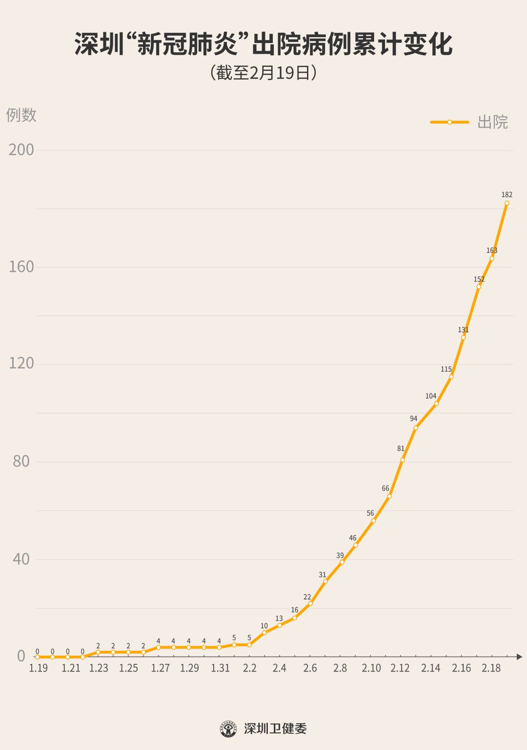 2月19日下午,經(jīng)專家組會診,深圳再有19名新型冠狀病毒肺炎確診患者出院,累計(jì)達(dá)182人,連續(xù)17天有人出院。