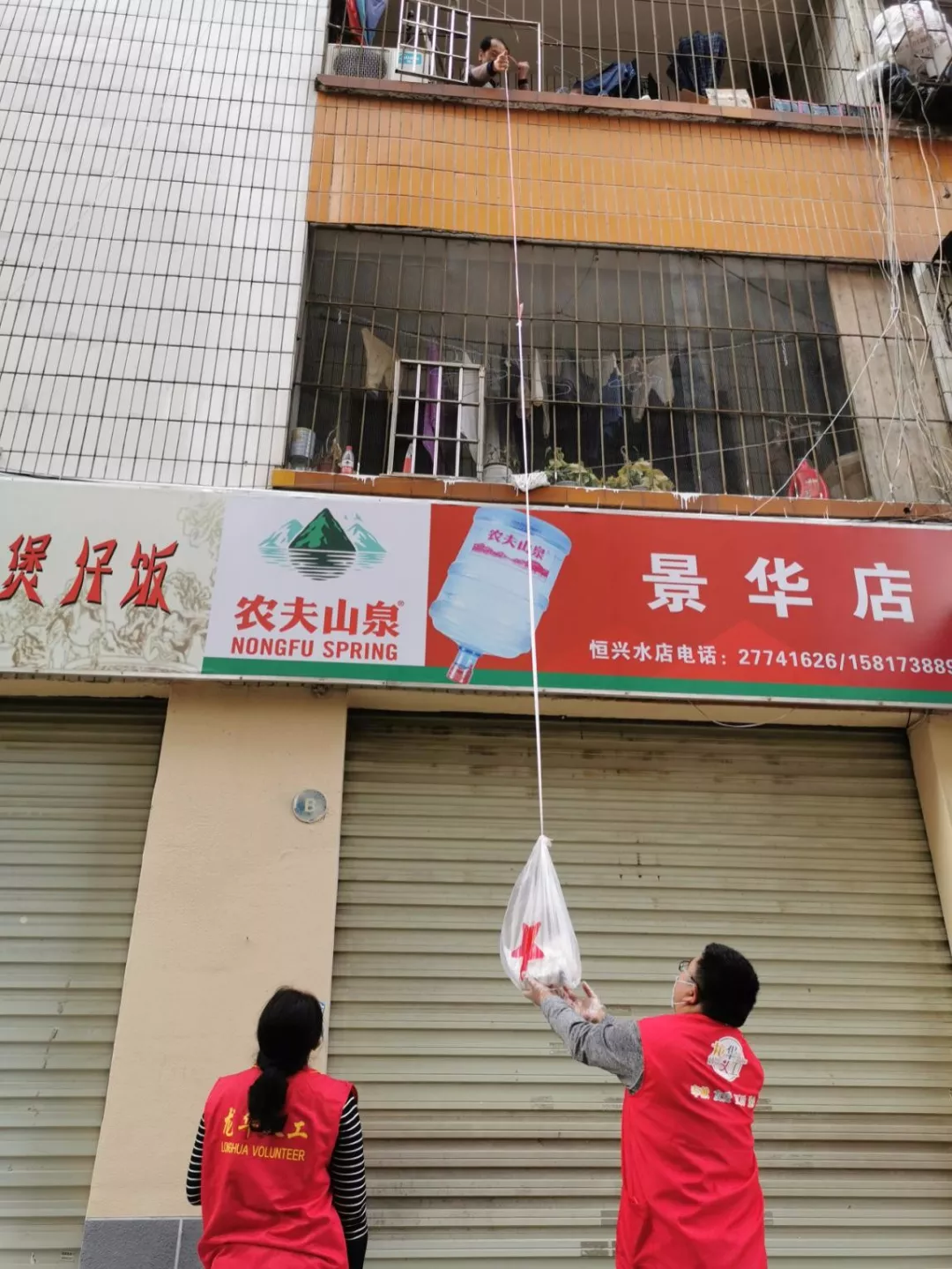 “為了實現(xiàn)無接觸配送,每天阿姨會把繩索放下來,她會電話告訴我們需要的菜品和生活用品,我們把她需要的東西都‘送’上去”。趙發(fā)威日常除了服務社區(qū)弱勢群體購買生活必需品,還承擔機動崗為需要替崗的志愿者“愛心接力”、執(zhí)行社區(qū)抗疫檢測點的測溫登記工作。