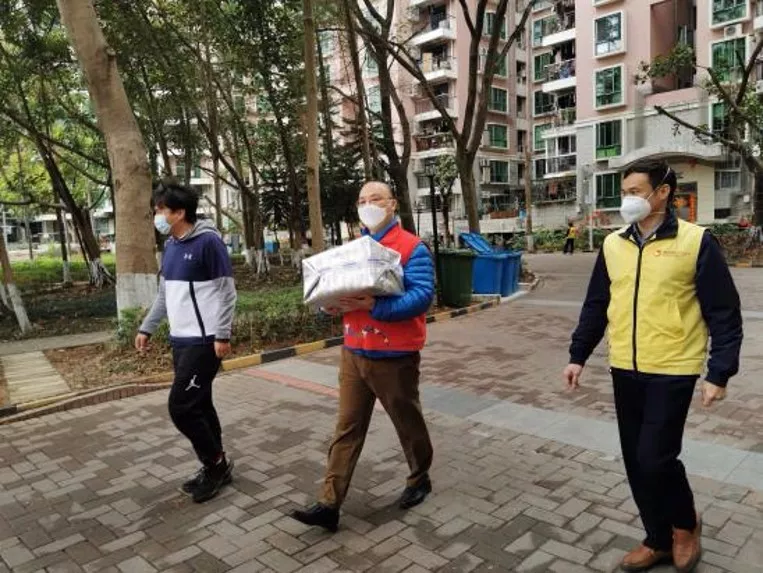 羅湖區(qū)東曉街道東曉社區(qū)某大廈出現(xiàn)確診病例后,志愿者何洪斌每天組織八九個人的義工服務隊對居家醫(yī)學觀察人員進行服務。