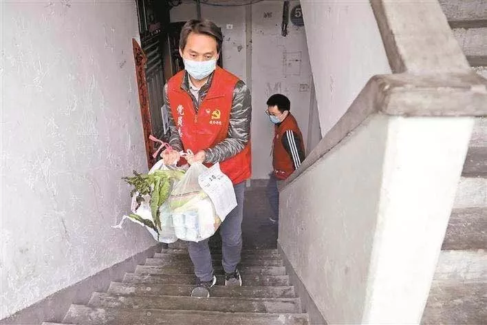新秀社區(qū)黨員志愿者為居家醫(yī)學觀察的家庭配送食品物資(深圳晚報記者楊少昆攝)