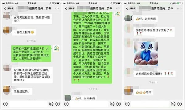 據(jù)介紹,心理服務小組根據(jù)不同服務對象,靈活提供多樣化的可及性心理服務,包括家庭團體心理服務、一對一個案咨詢、線上課堂、線上答疑等,具體服務內(nèi)容有:為確診冠狀病毒感染的病人及家屬提供線上一對一心理咨詢及家庭團體心理服務;關注社區(qū)一線的工作人員,為“三位一體”工作群、網(wǎng)格員工作群、醫(yī)護人員工作群、黨群干部工作群等一線工作人員提供“安心防疫心理手冊”線上課堂,視頻講解“安心”防疫工作;為工作強度大、情緒壓力大的一線人員開展線上減壓團體活動及個體咨詢服務;在專業(yè)的精神衛(wèi)生專家的指導下,聯(lián)合各社區(qū)的精訪社工,為社區(qū)有精神疾病的病人及家屬提供線上心理復康指導及心理咨詢服務;開通三條心理服務熱線,為居家隔離的人群提供線上電話咨詢服務及微信群線上答疑及文字咨詢活動。