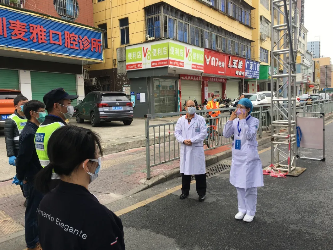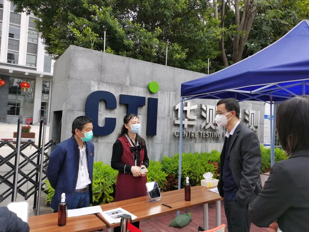 隨后,集團社康管理中心負責人和興東社康醫(yī)務人員到社區(qū)內的重點企業(yè)——華測檢測認證集團股份有限公司,開展復工復產防疫工作,指導管理人員學習如何正確戴口罩、洗手、測體溫,口罩回收注意事項、如何避免登記人員信息時感染等等。